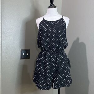 Old Navy Sleeveless keyhole Romper Black White Polka Dots