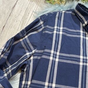 Old Navy Slim Fit Blue White Plaid Button Down Shirt. This is in good used condition