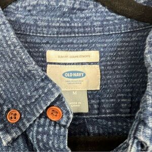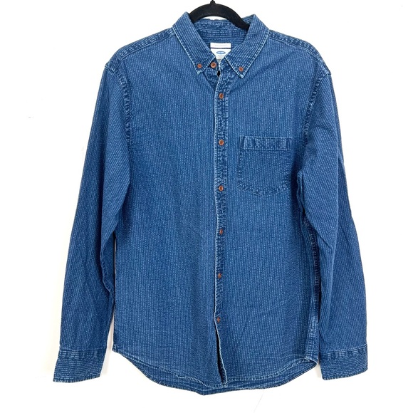 Old Navy Slim Fit Button Down Shirt Blue Chambray Striped Men's Medium