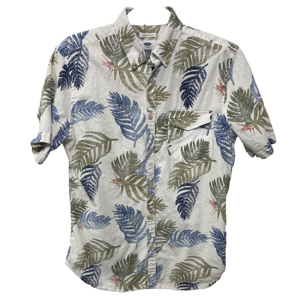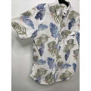 Old Navy Slim Fit Button Shirt Tropical Hawaiian Linen Blend Shirt Men's Sz S