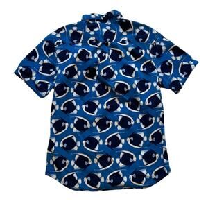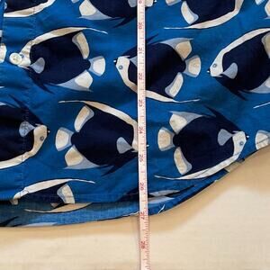 Old Navy Slim Fit Flex Blue Button Down Short Sleeve Shirt Tropical Fish Size M