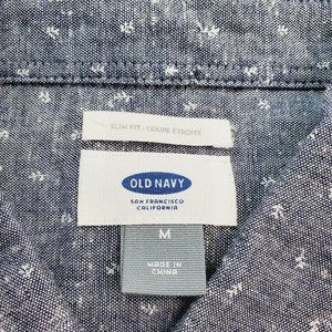 Old Navy Slim Fit Shirt Chambray Blue Floral Long Sleeve M Medium