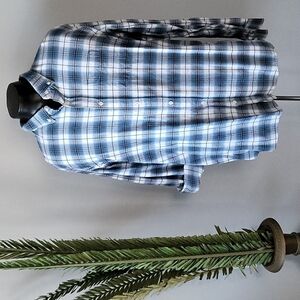 Old Navy Slim fit green plaid flannel button down shirt Size XXL Tall