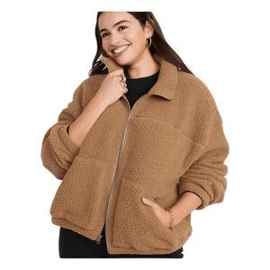 Old Navy Slouchy Sherpa Fleece Jacket Braised Tofu Brown XXL