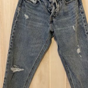 Distressed, high rise, slouchy straight jean, with button fly, raw hem. No signs of wear, price negotiable.