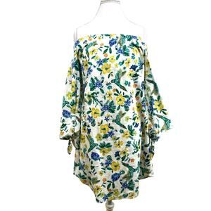 Old Navy Small Off-Shoulder 3/4 Dress Green/Blue Floral Birds Resort Summer Cute