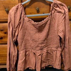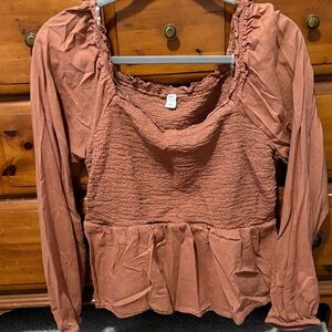 Chic smocked design with long sleeves. Soft and stylish for versatile wear.