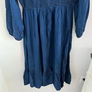 Old Navy Smocked Indigo Maxi Bitton Ruffle Longline Lyocell Large