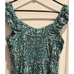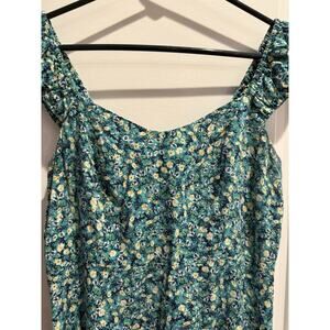 Elevate your wardrobe with this beautiful Old Navy peasant babydoll midi dress in a stunning kelly green hue. The dress features a floral pattern that is perfect for any occasion whether it's for travel, party/cocktail or casual. The dress has a scoop neck and is sleeveless, making it perfect for the summer, fall and spring seasons.