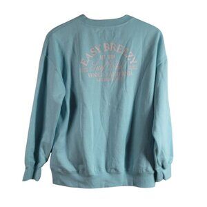 Old Navy Blue Aqua Sweatshirt Pullover Long Sleeve Crew Neck SoComfy Tunic Length Surf Club Venice CA Easy Breezy