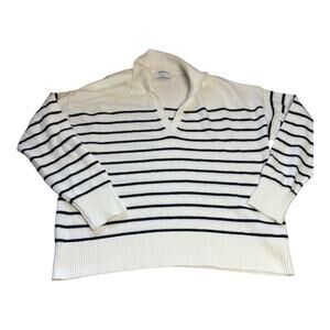Old Navy SoSoft Collared Sweater Striped White Navy Blue Size M NWT