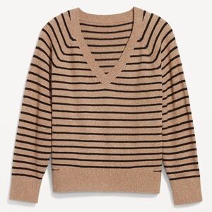 Old Navy SoSoft Loose V-Neck Sweater Earth Brown Stripe XL Fall Layer Cozy Layer