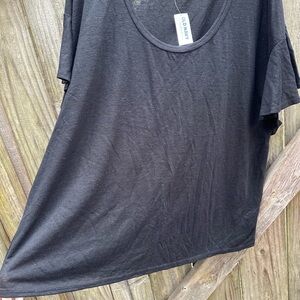 Old Navy Solid Black Linen Blend Flutter Sleeve Loose Fit NWT Casual Tee