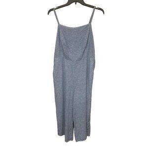 Old Navy Spaghetti Strap Cropped Wide Leg Jumpsuit Linen Blend Chambray Smocked