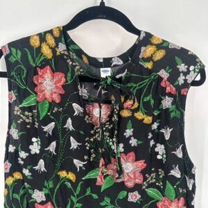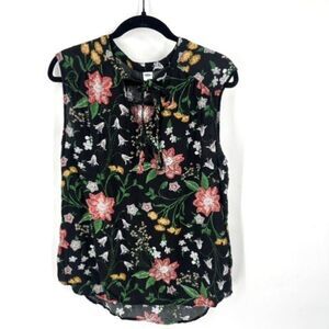 Old Navy Split Neck Tie Blouse Black Floral Size Medium Sleeveless Romantic
