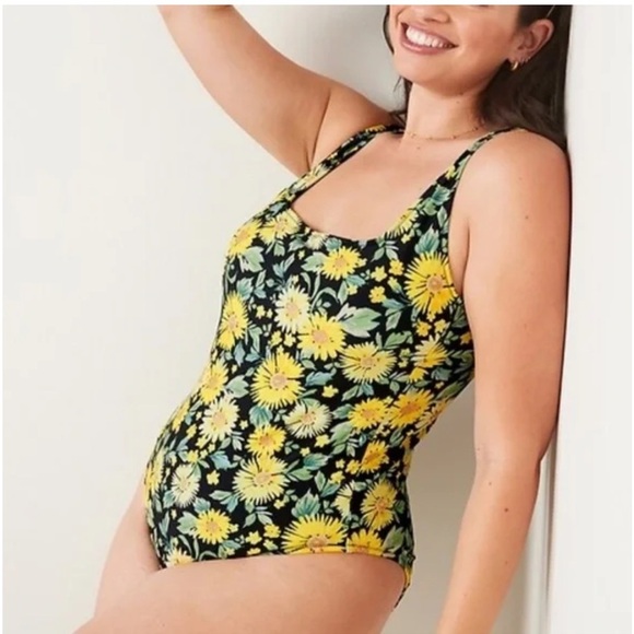 Old Navy Square Neck French Cut One Piece Swimsuit in Daisy Print