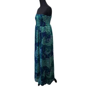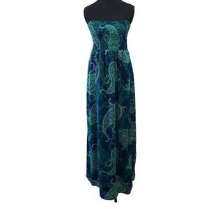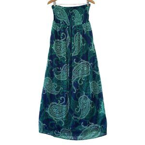 Old Navy Strapless Paisley Print Maxi Dress Smocked Bodice Size L Boho Resort