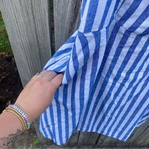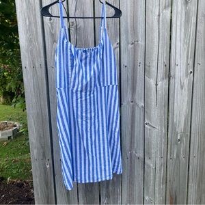 Chic mini dress with vertical stripes. Features spaghetti straps. Ideal for casual wear.