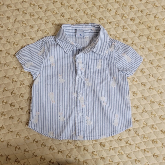 Old Navy Striped Bunny Print Button Down Polo Shirt 0-3M