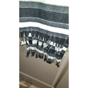 Old Navy Striped Fringed Fleece Rectangle Scarf Black Gray White O/S 60"x9.75"