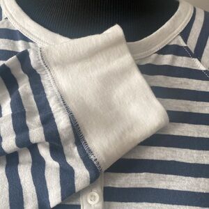 Old Navy Striped Henley Navy Blue & Off White 100% Cotton Long Sleeve Tee XL NWT
