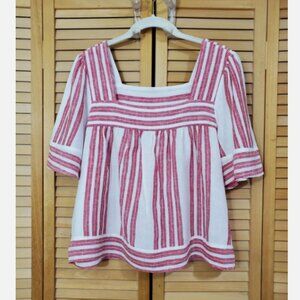 Old Navy Red & White Striped Linen-Blend Square-Neck Top Size L In Very Good Pre-Owned Condition