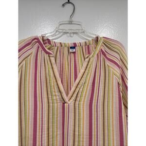 Old Navy Striped Peasant Top Women’s Size Medium Multi Color Gauze 100% Cotton