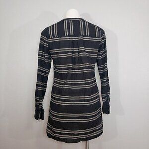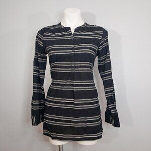 Old Navy Striped Popover Tunic Black & Gray Split Neck Long Sleeve Small