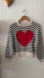 Cozy and stylish striped sweater featuring a bold red heart design. Perfect for adding a touch of fun to your wardrobe.