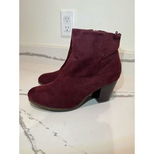 Old Navy Suede Booties Zip Up Heeled Boots Size 8 Wine Merlot