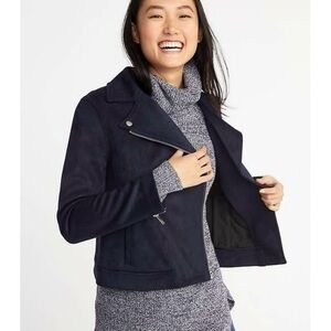 Old Navy Sueded Navy Blue Women’s Moto Zip Jacket Sz XL