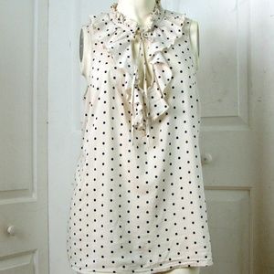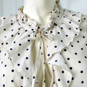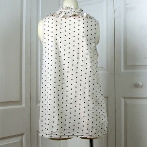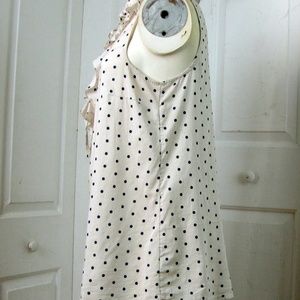 Cool Old Navy summer white blouse with navy blue polka dots.