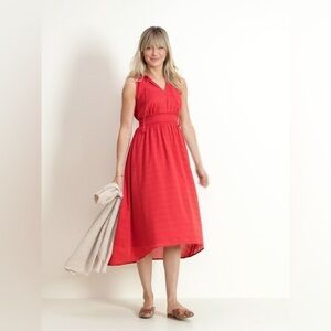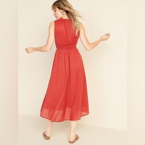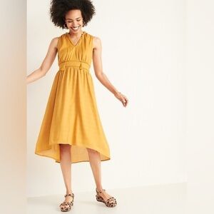 Old Navy Sunflower Gold Waist Defined Ruffled Tie Neck Midi Dress