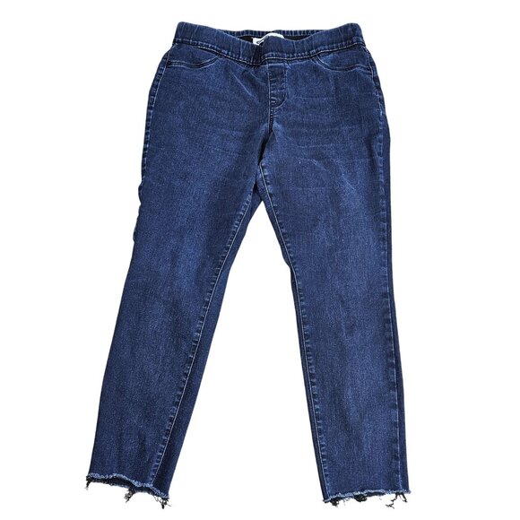 Old Navy Super Skinny Jean Womens 14 Blue Pull On Raw Hem Stretch Denim Jeggings