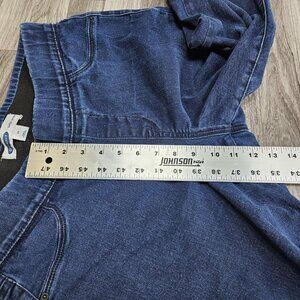 Material: Cotton, polyester and spandex stretch denim blend (per fabric tag).