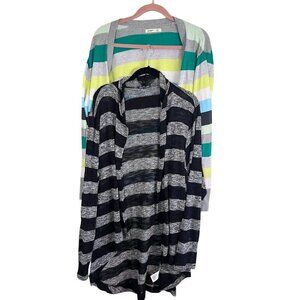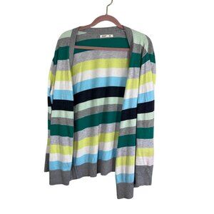 Old Navy Sweater 2X Gray Striped Cardigan Kit Preppy Mature Boho Goth Retro 80s