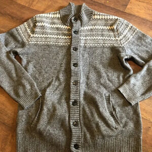 Old Navy Sweater Men's XL Cardigan Gray Fair Isle Grandpa Academia Preppy
