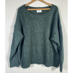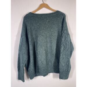 Old Navy Sweater Sz 2X Green Chunky Knit Womens Cable Knit Fisherman Cabin Core