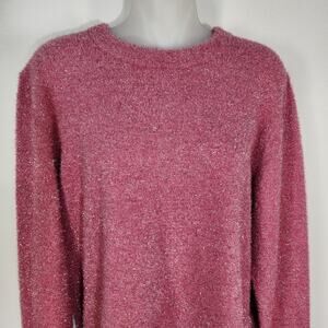 Old Navy Sweater Womens Large Eyelash Shine Party Pink A Boo Pullover Sparkle