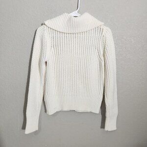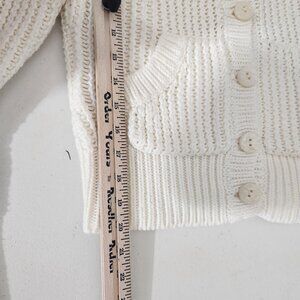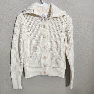 Old Navy Sweater Womens Medium Ivory Button Front Cardigan Knit Pockets Collar
