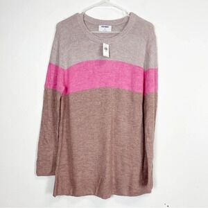 Old Navy Sweater Womens Plus Size 1X Pink Colorblock Crewneck NWT