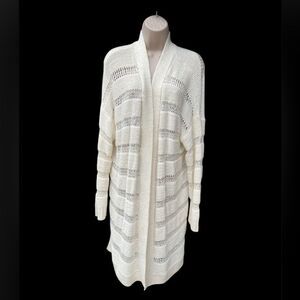 Old Navy Sweater XXLarge Ivory Pointelle Loose Knit Open Cardigan Kimono