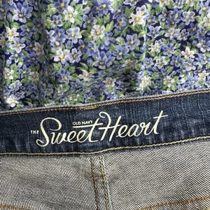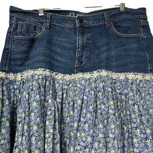 Old Navy Sweetheart Upcycled Denim Floral boho long modesty Skirt Size 14