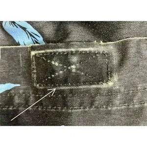 The hook & loop tab on rear pocket has signs of Whitening/Wear. See last picture with arrow pointing at the issue.