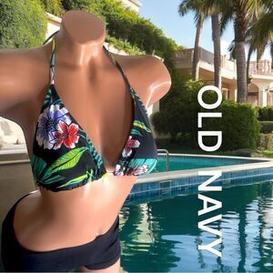 Old Navy Swimwear l Triangle Bikini Top l Tropical Black w/ floral print l Tie back l EUC