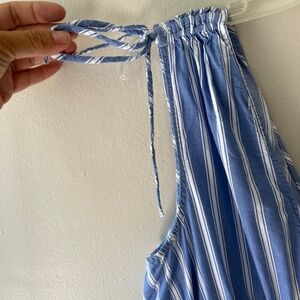 Old Navy Sz L Blue V Neck Stretch Tank Maxi Flare Dress Tie Shoulder Smocked