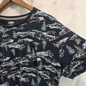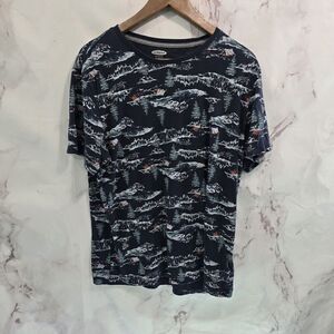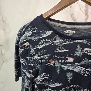 Old Navy T Shirt Mens Medium Navy Crew Tent Snow Camping Trees Trail Hiking