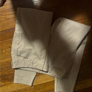 These Old Navy tan chinos feature a classic straight-leg cut and a flat front design, crafted from durable cotton twill fabric. The versatile tan color makes them a staple for both casual and business casual settings.