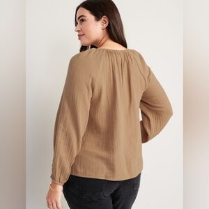Old Navy Gauzy Tan Blouse Long Sleeve Button Neck Size Large