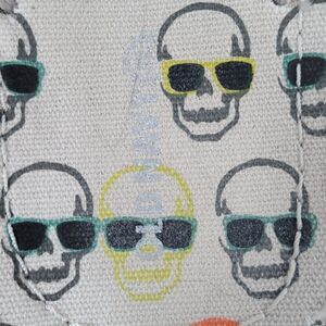 💜Old Navy Tan Canvas Raw Hemline Skull Print Flip Flops Youth Size 6